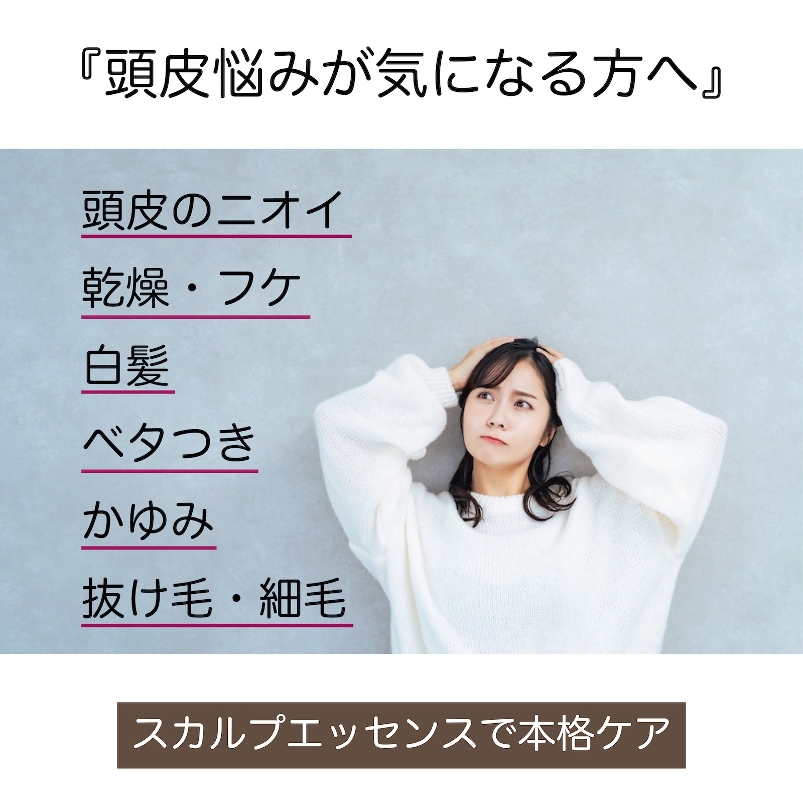乾燥・かゆみ・白髪・抜け毛などの頭皮トラブルに、多角的にアプローチ。