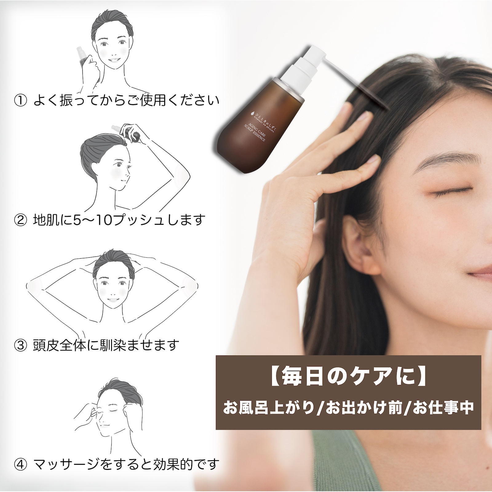 お風呂上がりにマッサージするだけの簡単ケアで、潤いとハリのある柔軟な頭皮へ。