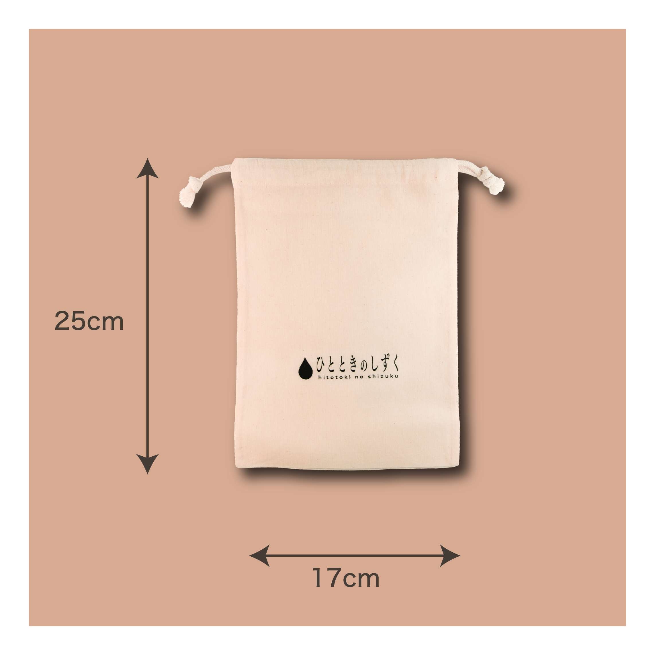 ひとときのしずくのロゴをあしらった、やわらかな綿素材のギフトバッグ。