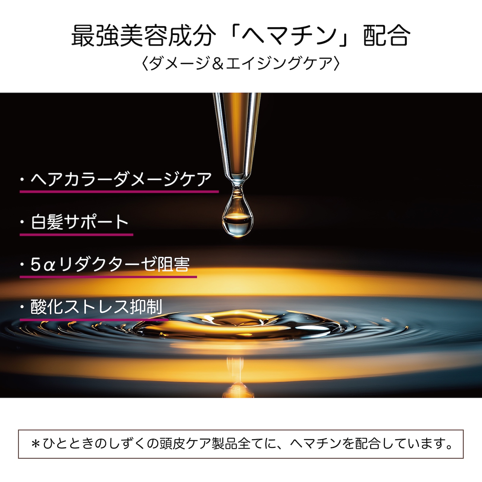 ヘマチン配合で、カラー後の髪を内部から補修。色持ちとツヤをしっかりキープ。