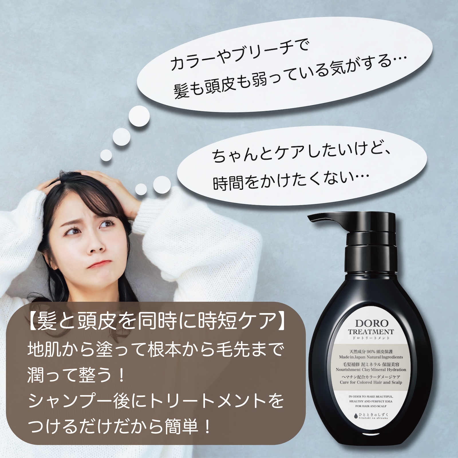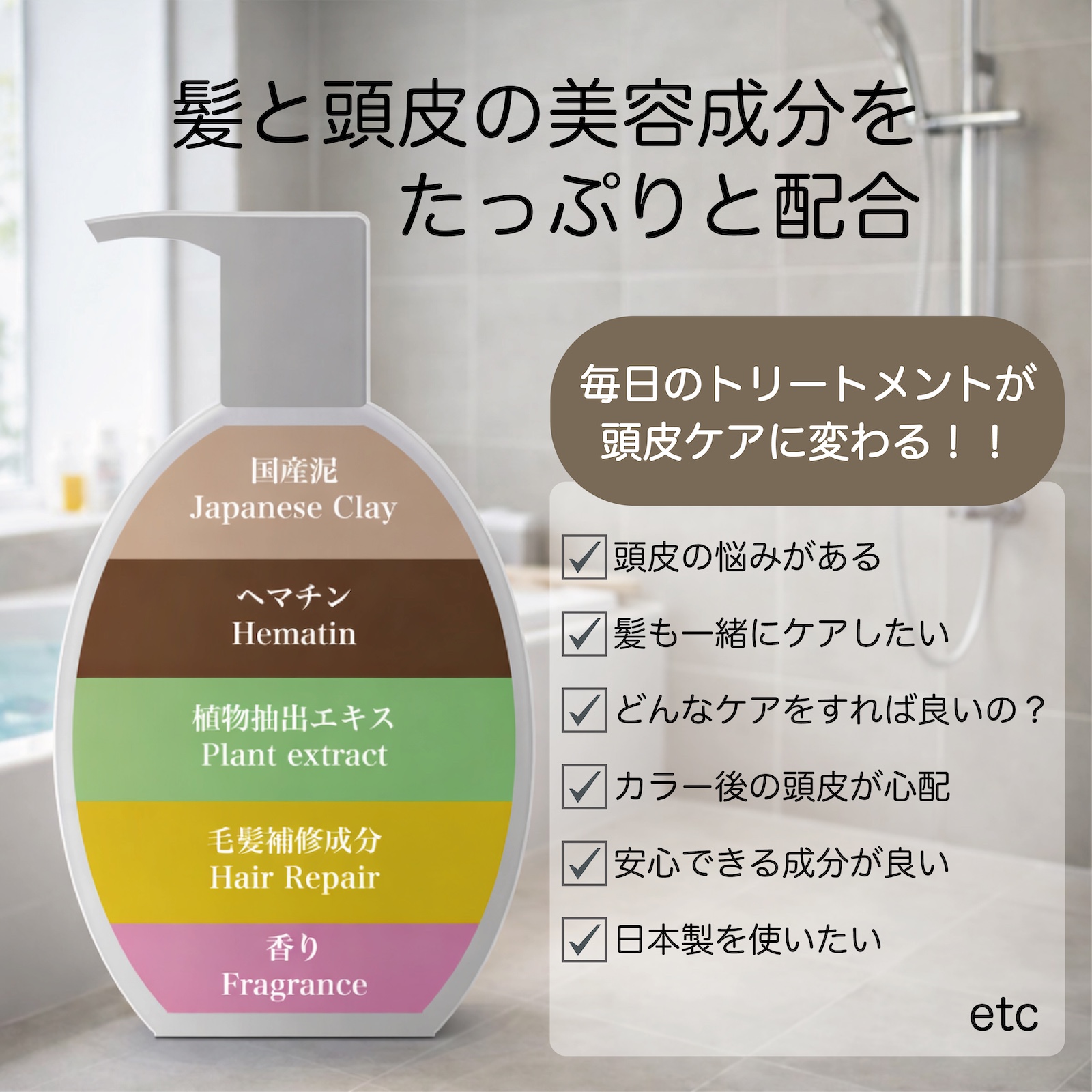 「髪だけに塗るトリートメント」ではなく、地肌から使える処方が特徴。
