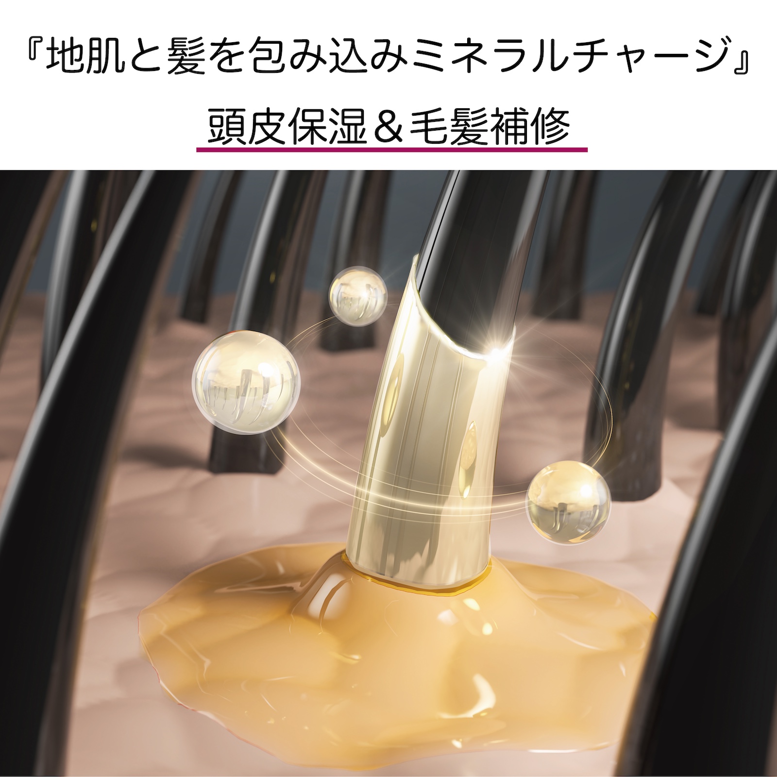 髪と頭皮に潤いを与え、髪の根元から毛先までしっとりなめらかに整えます。