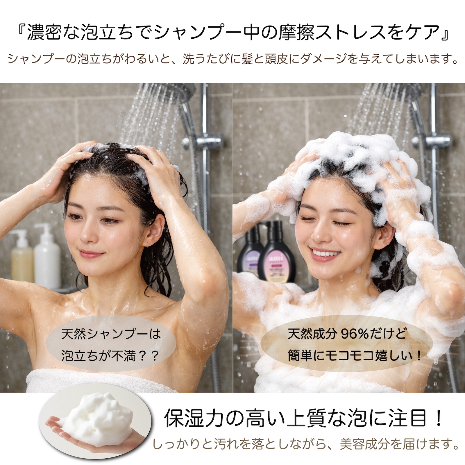 毛髪まとめ泡(髪にまとまりを与えるアミノ酸泡)でなめらかな洗い心地。