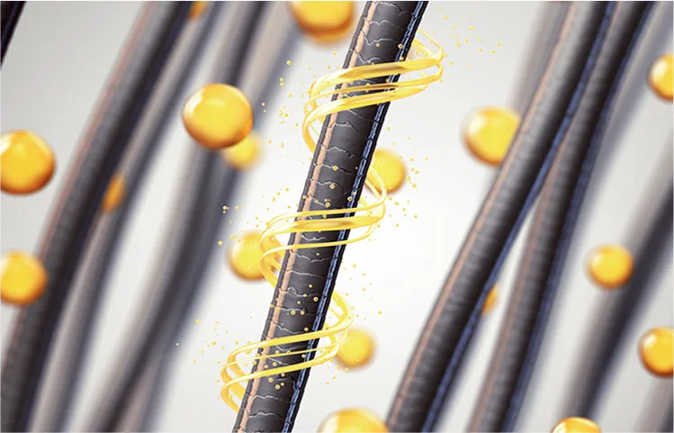 トリプルCMC がコルテックスを保護。脂質の中に水分を閉じ込め保持します。損傷を受けた毛髪のダメージをケアし、バリア機能を高めることでハリとツヤのある美しい髪を維持します。
